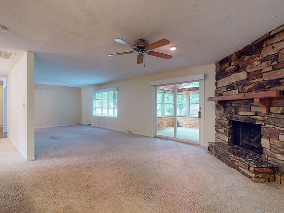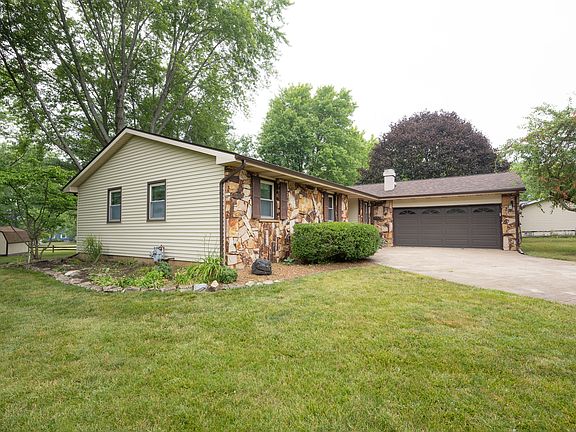 Settled amongst many mature trees, with access to the nearby private lake, you will feel right at home. This 3 bedroom 2 bath home in Mahomet, just North of Lake of Woods Golf Course, is move-in ready and has had a new roof and siding installed in June of this year (2023). As you come in the front door, you will step into the large living room with a gas fireplace, the kitchen is next with it's bar seating and formal dining adjacent. Enjoy the sunroom where you can look out into your beautifully landscaped backyard with plenty of room to entertain. The storage available in the garden shed is in addition to the attached two car garage. This property has been loved and well cared for and is now ready for new owners to call it home.