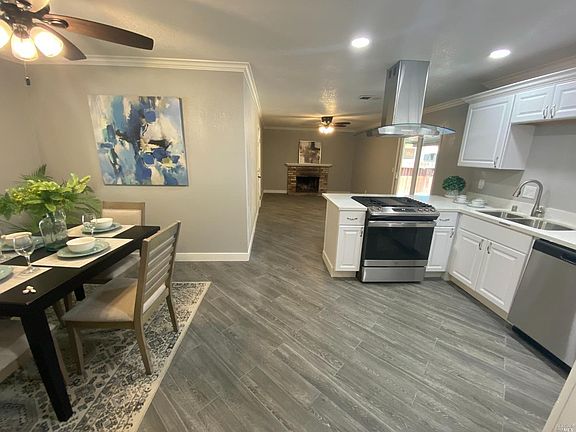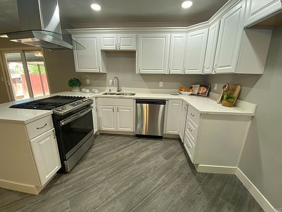 Remodeled 3 bed 2 bath rancher located in the Humphrey Estates subdivision of Suisun City CA. This home offers a full renovation centered around a beautiful kitchen remodel with European inspired cabinets, countertops, stainless hardware, stainless appliances & hood, new plumbing fixtures and recessed lighting! Additional amenities include remodeled bathrooms with new cabinets, countertops and plumbing fixtures & flooring, new wood simulated tile flooring with new neutral carpet in bedrooms, new doors & hardware throughout, new plumbing fixtures throughout, crown molding, new interior and exterior paint, new garage door, central heat with new AC and dual pane low-e windows! This home is conveniently located close to shopping, restaurants and provides easy freeway access to Airbase Parkway & Interstate 80.