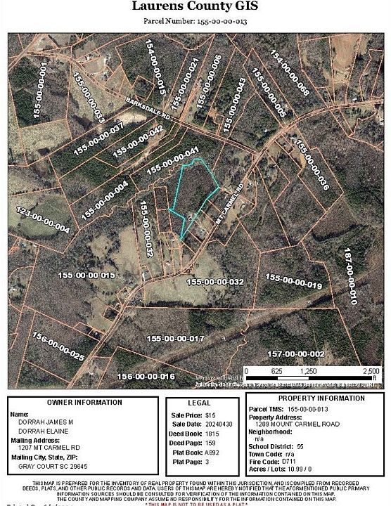 This property sits at the edge of Gray Court Near Ftn Inn. Great freeway access. 10 Acres great for a subdivision /new developement. There islots of new communities popping up around it. Another Parcel is available for sale with street frontage that can be purchased w/this lot to the leftof 1207 Mt Carmel which could be a great entrance for a subdivision. Currently 1209 Mt Carmel is accessed through an easement that runsacross 1207 and the lot to the right. Public water is available, only needs septic. Power is already on site. A Mobile home (not de-titled sits onthe front edge of the lot) will not convey w/the property. Owner plans to do a partial land release & separate this section out of the sale will resultin a net acreage of 10 acres + remainng for sale