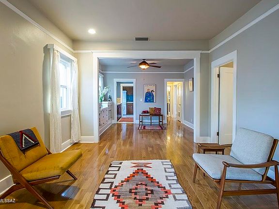 Adorable, beautifully updated 1921 bungalow in historic Feldmans neighborhood! Wonderful entry mudroom/office, light-filled living and dining rooms, and three bedrooms (and they are very spacious rooms for this vintage!), new hardwood floors, upgraded windows, newer AC. Kitchen has been remodeled, and all appliances stay. W/D are in a convenient laundry room off the kitchen. Plumbing, hot water heater are in the basement-crawlspace. Stunningly landscaped backyard with a gazebo, pavers, planters and flowering desert plants. Just blocks to wonderful cafes and coffee-shops, UA and downtown, with a Bikescore of 99 (Biker's Paradise!) Gorgeously landscaped yard, and a wonderful workshop is a bonus building... there's even a dog-door! Historic tax credit if owners occupy!