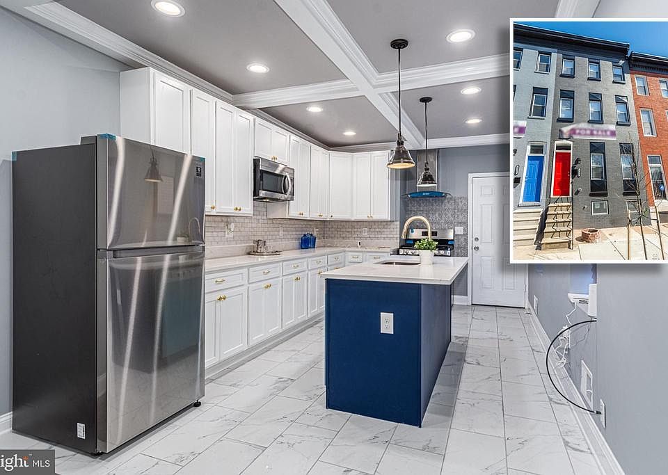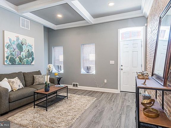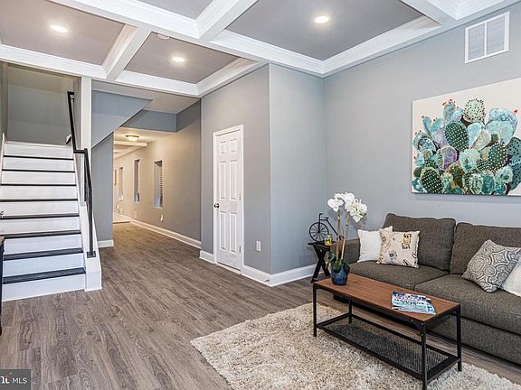 EXCEPTIONAL 3 LEVEL RENOVATION WITH OVER 2,200 SQ. FT. OF LIVING SPACE! Features include wood flooring throughout, an inviting living room with tall, coffered ceilings & exposed brick, designer island kitchen with granite counters, ss appliances, and ample cabinet space, a main level half bath, upper levels with a Primary bedroom suite with a full bath, and 2 additional bedrooms with a hall bath, an unfinished basement that's perfect for storage, and a rear fenced patio! Property is eligible for 10K Vacants to Value grant & 5K LIVE NEAR YOUR WORK GRANT - SAVE THOUSANDS!