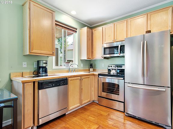 Updated townhome backing to greenspace near Nike, Tanasbourne and Intel with easy freeway access. Engineered hardwoods throughout main, updated kitchen with new stainless steel appliances and patio area overlooking private greenspace. Master suite, laundry and 2nd bedroom with two closets upstairs. Vaulted 2nd story lives large. Plenty of storage. No rental cap, investors welcome. Open Sat/Sun 12-2p.