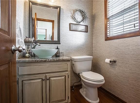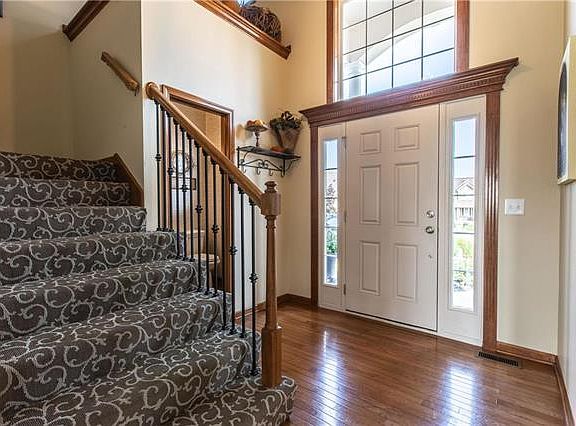 Beautifully maintained 4 bed, 4.1 bath home in desirable Bristol Park, Staley High School boundaries! New roof/gutters, screens & water heater! Spacious open floor plan main level w/ formal dining & hearth room. Kitchen features pantry, island, granite counters, refinished cabinets & new backsplash. Walk out to deck, down to stamped patio w/ fireplace - overlooking HUGE fenced yard! Upstairs are 4 bedrooms & 3 full baths. Oversized master suite! Finished basement w/ full bath, wet bar, fireplace & storage!