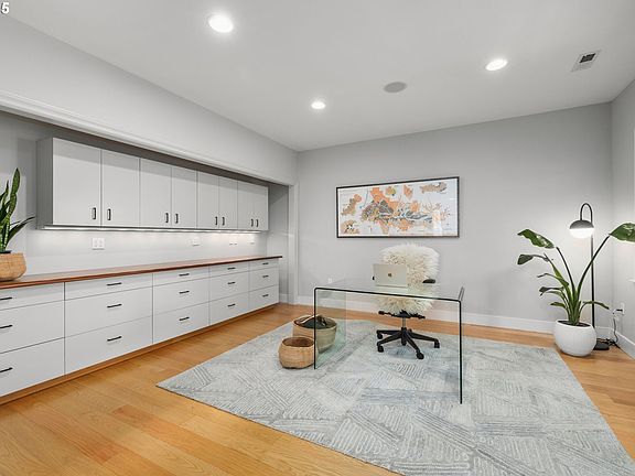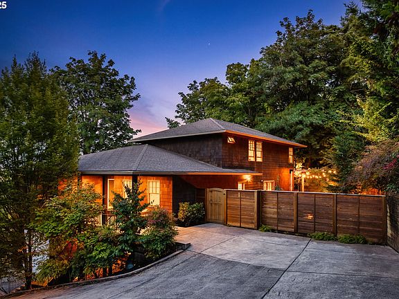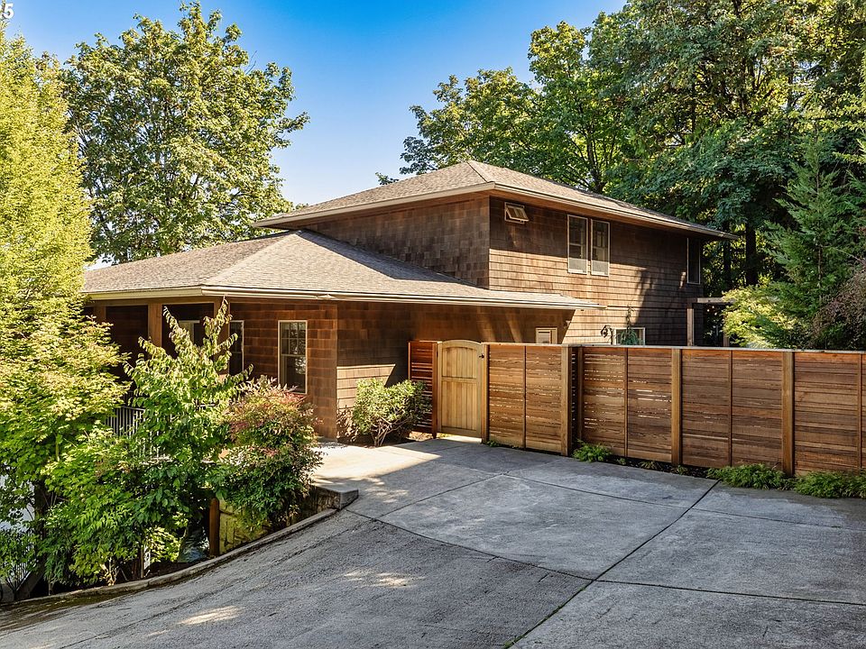 Welcome to this stunning Northwest Contemporary home, perched in a serene, elevated setting just above 23rd Avenue.Designed to capture breathtaking views, the main level offers 2,400 square feet of single-level living, framed by a dramatic wall of windows that showcase panoramic vistas of the city, river, and four majestic mountains.Inside, an open-concept layout is anchored by a striking two-sided fireplace, creating a warm and inviting transition between the living and dining areas—perfect for both entertaining and quiet evenings at home.A standout feature of this thoughtful floorplan is the main-level primary suite, which opens through charming French doors to a private side yard retreat. Here, you'll find a hot tub, water feature, and fire pit, offering the ultimate in outdoor relaxation and privacy.Also on the main floor is a dedicated home office, ideal for remote work or client-facing business—blending functionality with comfort and style.The spacious kitchen is another highlight, featuring custom solid teak countertops that flow throughout the home. These exceptional surfaces were crafted and installed by the original owner—a skilled boatbuilder who once constructed sailboats in the expansive attached garage and workshop.The lower level offers a fully self-contained living space with its own private entrance—ideal for multi-generational living, long-term guests, or potential rental income. Additional features include a wine room, exercise area, and generous storage space.Upstairs, a comfortable family room is surrounded by two additional bedrooms and a finished den, providing flexible space for guests, hobbies, or a second home office.This unique home offers something special for everyone—whether you're seeking quiet retreat, creative space or room to grow. [Home Energy Score = 5. HES Report at https://rpt.greenbuildingregistry.com/hes/OR10195865]