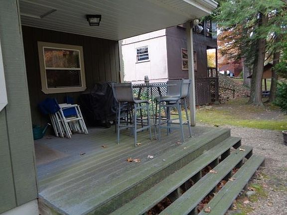 Cozy stream side cottage located in the foothills of the Laurel Mountains. Twenty minutes from Seven Springs & 30 minutes to Ohiopyle & quick access to 76. Convenient for all outdoor enthusiasts! Previous seller completely gutted home down to the studs when they purchased it. Totally redone inside it is like walking into a brand new home. Brand new spray foam insulation underneath cabin & brand new main line plumbing. Spend your lazy summer evenings relaxing on your covered rear porch while fishing right off the deck while enjoying high speed, fiber internet! The home has an island surrounded by water with a fire pit and shed. Stone fireplace in the living room. First floor master bedroom and first floor full bathroom. Bright and airy large kitchen with all appliances. Home is wired with speakers provided for surround sound with cable installed on both floors. Partially furnished! Couch in living room converts to an extra bed. Water pump replaced a couple years ago, just installed and updated well system. New electrical box. Septic tank just pumped. Ample off street paved parking. A must see !! Low taxes !!