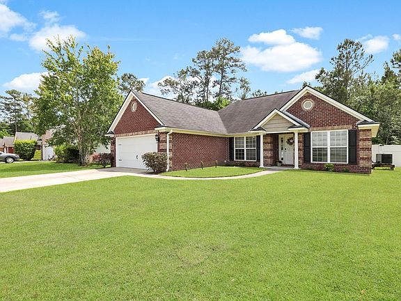 Discover the epitome of living in this fabulous brick-faced home nestled in the desirable Oak Crest community of Hinesville! Entertaining is a joy with a formal dining room flowing into the cathedral-ceiling living room, complete with an electric fireplace. The galley kitchen boasts a pantry and breakfast area, connected to the living room via a convenient cutout, keeping you connected to guests. Beautiful laminate flooring, no carpet. Retreat to the owners bedroom featuring tray ceilings and unwind in the master bath's double sinks, walk-in shower, and garden tub. The split floor plan offers two additional bedrooms and a guest bath. Outside, the back patio is perfect for entertaining or relaxing. The backyard is enclosed by an upgraded white vinyl privacy fence, providing a serene retreat. Community amenities include a neighborhood pool and playground, enhancing your lifestyle in this charming community. Don't miss out on this exquisite home!
