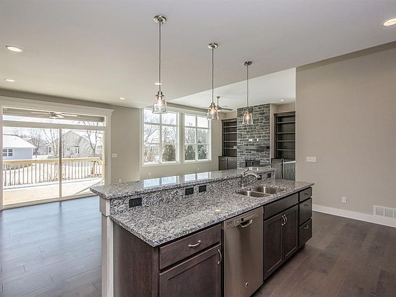 Split bedroom floor plan. Kitchen features wood flooring, Granite counters, two pantries, raised breakfast bar that would seat at least 4, and dining area with sliders leading to a covered deck. Great room with wall of windows, gas fireplace with built in shelves. Over sized master bedroom with huge walk in closet; master bath with Dura ceramic flooring; dual sinks; tile shower walls and a separate toilet room. Drop zone and laundry room located off the garage entryway. Lower level has 4th bedroom and full bath, rec room with a wet bar and slider to patio. Plenty of unfinished basement for storage. Work with an experienced builder, 60 years in the business. 12-5-10 Platinum warranty for added peace of mind.