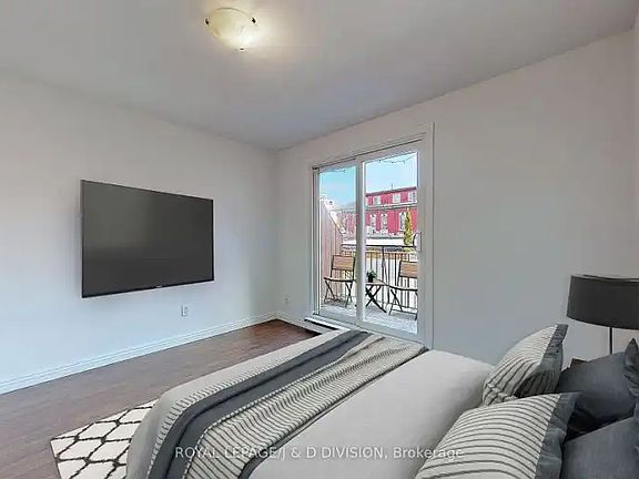 Bright and beautifully updated, this 3 + 1 bedroom townhome is tucked away in the heart of Leslieville within a highly sought-after, private gated community. Featuring a private entrance and an ideal, functional layout, the open-concept kitchen offers a breakfast bar, stainless steel appliances, a double sink, and a charming courtyard views of the new playground. Spacious living and dining areas flow seamlessly to an expansive, fully fenced backyard perfect for entertaining. BBQs permitted! The second level boasts two generous bedrooms, stacked laundry, and a private balcony overlooking the courtyard. The third-floor primary retreat includes a versatile sitting area or home office. The high-ceiling lower level offers direct access to the underground parking garage, a large den with closet (or 4th bedroom, home gym or office), a 4-piece bath, and a dedicated storage space for bikes and seasonal items. With over 1,300 sq. ft. of freshly painted, move-in-ready living space, this turn-key home is ideal for families and young professionals alike. Tenant pays for hydro. Heating and cooling via 3 high efficiency wall units (main, second and third floor).