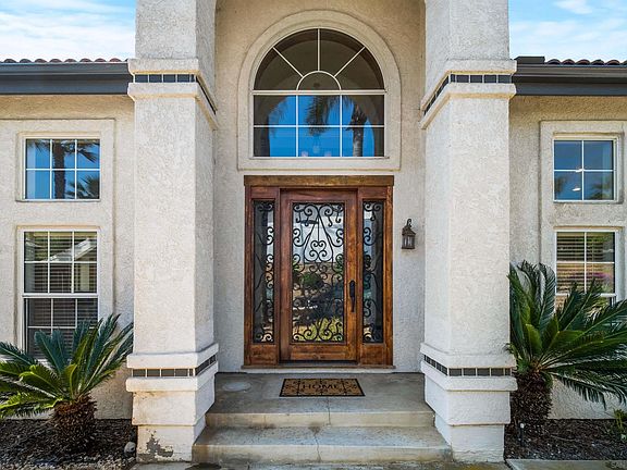 Located in a serene cul-de-sac, this impeccably maintained home boasts stunning area views. The entrance greets you with an elegant wrought iron stair railing, setting the tone for the exquisite details within. A convenient bedroom with a full bath on the entry level offers privacy for guests. Central to the home is the island kitchen, beautiful cabinetry, a pantry, and stainless steel appliances. The living spaces are adorned with wood and stone flooring, adding a touch of warmth and luxury, complemented by crown molding. The primary suite is a haven of relaxation, featuring a soaking tub and separate shower for spa-like indulgence. Outdoor entertaining is a breeze on the ready-to-use deck, offering a perfect setting against the backdrop of captivating views. Enhanced by owned solar panels for energy efficiency and move-in ready, this home encapsulates comfort, elegance, and sustainability. No HOA, no Mello-Roos.