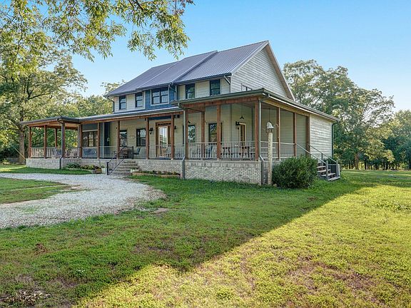 This idyllic farmhouse has all the space and charm that you could ask for! Walk up the round staircase to the giant wrap around front porch and you'll be sold. Adding to the curb appeal, the front porch is perfect for entertaining or just enjoying your morning coffee in peace. Inside the house is even more space for guests, with a double sized living area off the front door that hosts TWO fireplaces. Looking for space to cook for your friends and family? The beautiful farmhouse kitchen features tons of cabinets and counter space, a pantry, and an antique sink. Speaking of antiques, the entire house is sprinkled with refinished treasures. Just enough of the past is mixed with the modern amenities. The mudroom also features a refinished sink in the half bath and a laundry room that could clothe the masses. One large bedroom suite is downstairs off of the kitchen and mudroom. A tiled shower and double vanities adorn the space. Upstairs you'll find three more bedrooms and a bonus room, one of the bedrooms being the main suite. The upstairs suite has a walk-in shower AND a jetted clawfoot tub. A fireplace in the main bedroom adds a cozy feeling. Plenty of natural light upstairs! The other two large bedrooms connect with a jack-and-jill bathroom and their own vanities. Good thing the house comes with two water heaters. The bonus room could be your office, gym, sewing room, another bedroom, or whatever you'd like. You'll be in awe of all the little details in this home. If all of that isn't enough, the 35+ acres features various storage sheds and a huge shop with electric already in place. Plenty of space for all your tools and toys. It's quite the homestead with raised beds and a chicken run/house. Grow your own food and you'll never want to leave!