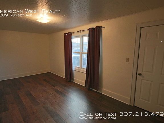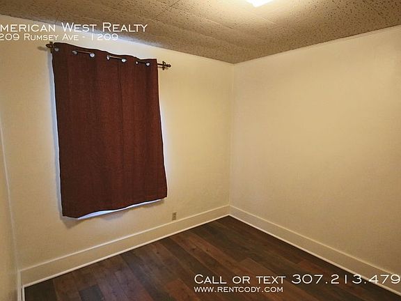 Nice apartment just one block from downtown Cody. New flooring and paint throughout. Efficient utilities. Kitchen includes fridge and gas stove, plenty of storage. No pets or smokers. All leases are subject to a $20 Resident Benefits Package. You can review the benefits under TENANT RESOURCES APPLICATION AND RENTING POLICY or contact the office for more information. _____________________ Information presented is deemed reliable, but is not warranted. Interested parties are responsible for conducting their own inspection to confirm the accuracy, completeness, currency, and status of all information before renting any property. _____________________ General requirements: All occupants 18+ must complete an application $30 application fee per person Submit a government-issued picture ID Prove combined income of 3x monthly rent To see our most updated list of rentals or learn more about our screening process, visit the American West Realty and Management website. _____________________ INVESTORS: are you looking for professional property management or an agent that can help you sell or expand your investment portfolio? Contact American West Realty and Management today to learn about our services! Flooring Hardwood Heat Wall Furnace Kitchen Stove / Oven Utility Black Hills Energy Utility City Of Cody (Water, Electric, Sewer, Trash)
