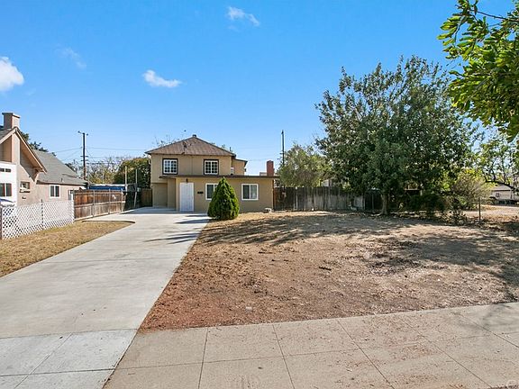 SPRAWLING LOT, OPEN FLOOR PLAN AND JUST BLOCKS FROM DOWNTOWN CORONA. This home sits back from the street and offers a long driveway, spacious front lawn & mature tree. The entry opens to a large family room with laminate wood flooring and a brick fireplace. It is open to the updated kitchen which has updated cabinetry, granite counter tops, tiled floors and a french doors to the backyard. There is a downstairs master bedroom with a spacious master bathroom with backyard access. Upstairs there are three additional bedrooms, a huge bathroom and views from the windows. The backyard offers a two car garage accessible from the alley, a carport, concrete driveway, grass area and a covered patio.