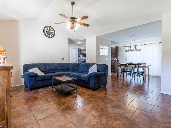 Enjoy the scenic sunsets from the back deck of this lovely walk-out basement home in Ozark! This beautiful open floor plan home is sure to delight. Light and bright inside, freshly painted and move-in ready! Open floor plan, and a large kitchen with plenty of storage, pantry, and stainless appliances! Tile and wood laminate floors are easy to maintain. Master suite features a large walk-in closet and dual vanities! Two bedrooms on the main level, and 3 more bedrooms downstairs! (One room is currently a HOME THEATER and system stays!!!) Basement offers a second family room area. Two back decks and a fully privacy fenced back yard. This lovely home qualifies for the USDA 100% financing program.