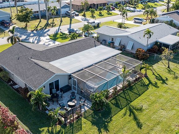 This 1,610-square-foot home with a pool is perfect for anyone looking for a comfortable and well-maintained space in the heart of South Cape Coral. It features three bedrooms, two bathrooms, and a layout with plenty of room to relax or entertain. The large kitchen comes equipped with stainless steel appliances, along with plenty of storage and workspace, and the home is partially furnished, making it easy to settle in right away. Step outside to your private backyard, where you’ll find a pool, a pavered seating area, and beautiful mature landscaping that adds both privacy and charm, creating the perfect space for enjoying quiet mornings or hosting friends and family. Located in a peaceful neighborhood in South Cape Coral, you’ll be close to everything—schools, shopping, dining, and just minutes from the bridge to Fort Myers. With a new roof installed after Hurricane Ian, as well as three new impact windows and one new impact sliding door, this home is ready for its next chapter and offers the perfect blend of Charm, comfort, and a great location. Schedule a showing today! - Home is in an X flood zone, lender will not require flood insurance.