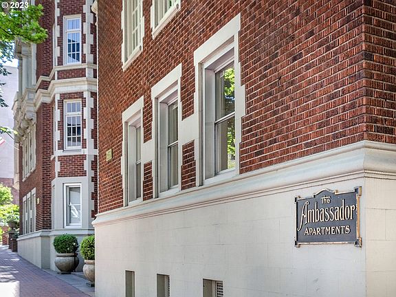 One of the most desired locations in the historic Ambassador! NE corner unit in the N tower. 9 ft ceilings, crown moldings,built-in bookcases, dbl closets in main BR. Updated kitchen with newer cabinets,new interior paint, quartz counters, glass tile backsplash, Bosch fridge/freezer, drawer style d/w, recessed LED lighting; updated bathroom w/walk-in shower (floor-to-ceiling tile), hexagon tile floor, newer plumbing fixtures & lighting. In-unit stacking washer & dryer! Storage locker in basement. On MAX line.