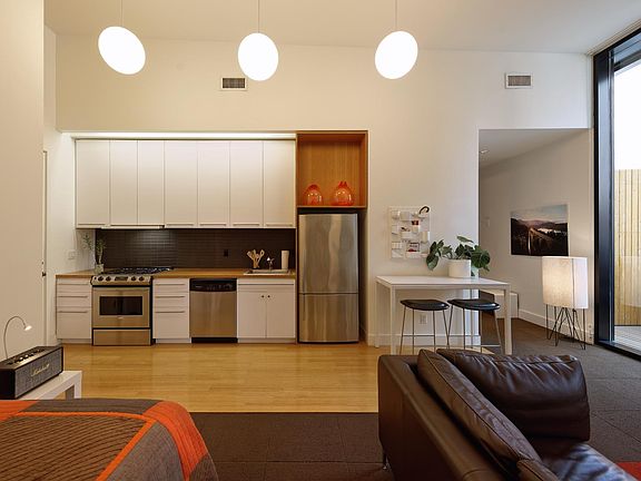 unique studio available in Skylab Architecture designed west end building. Unit has its own entrance, exterior patio, kitchen and bathroom including tub. Downstairs is Dolly Olive, Never Coffee, a salon includes water , trash, recycling. Tenant pays electric, gas and cable tv / internet.
