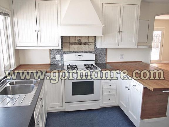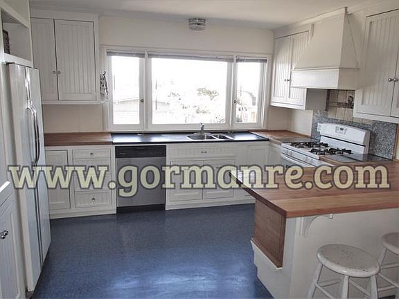 Fabulous Beach Tract location for this 3 bedroom, 2 bathroom home. This home has approximately 1,540 square feet of living area on two levels (split level). The living room is spacious and features a brick fireplace with a heat-generating electric fireplace and attractive oak hardwood flooring. The dining area is off the living room and features oak hardwood floors and access to the large, covered patio through the dining room double door, which lets lots of light into the room. The kitchen is attractive and spacious, including abundant cabinetry, real wood butcher block counters mixed with laminate (near the sink) and granite (near the oven) sections, and a breakfast bar with three stools. Kitchen appliances include a refrigerator, a self-cleaning gas range/oven, and a dishwasher. The master bedroom is located up a half flight of stairs and has lots of room with a large sitting area that could be an office, den or nursery with a small peek of the bay through roofs. The other portion of the master bedroom has access to a small rear covered deck and the rest of the rear yard, which includes two other patios in addition to the covered patio off the dining area. The master bathroom has a beautiful tile shower stall and a handsome vanity. The other two bedrooms are located on the main level, off the hallway. Both have oak hardwood flooring and have easy access to the guest bathroom, which features a nice vanity with classic tile and a shower over the tub with newer tile. The home has central heating and double pane vinyl windows. The garage is functional for storage but likely too small for most cars; there are two driveway parking spaces. The garage has a laundry area with a washer and electric dryer (left by a prior occupant -- no warranty). Rent includes basic gardening (done by the owner) and sewer. Storage shed is not included in the rental. No smoking allowed. One small pet with excellent references considered. Available immediately.