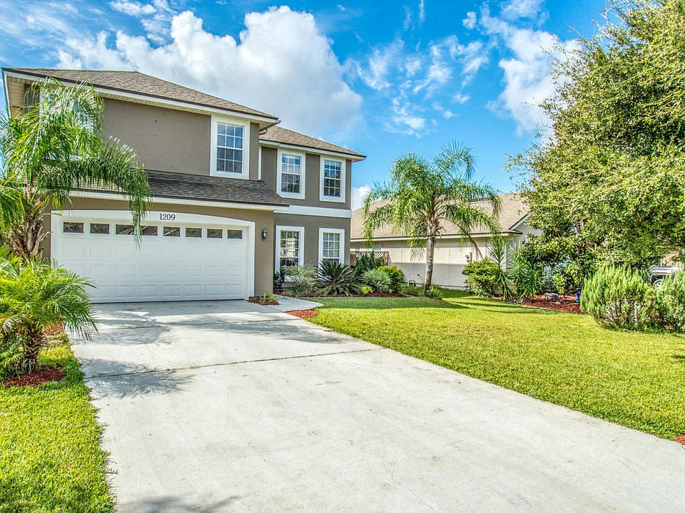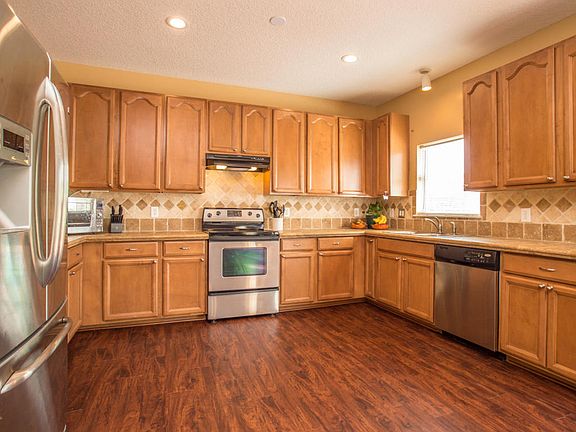 SPACIOUS 5 BEDROOM/3 BATH HOME IN THE FABULOUS HERITAGE LANDING COMMUNITY. This home has room to enjoy. Formal Living or Dining area in the front. Large Open Kitchen - Family Room along the back of the home. The Kitchen has beautiful tile backsplash and counters, stainless appliances and large walk-in pantry. Downstairs bedroom is perfect for guests! Upstairs are 4 bedrooms and a huge bonus room that could be turned into a bedroom. The Master Suite has a large walk-in closet. The Master bath features double vanity areas, separate tiled shower and whirlpool tub. Large fenced in yard with patio. Exterior recently painted. Quiet cul-de-sac street. Laundry room with utility sink. 2-car garage. Heritage Landing has 2 pools, clubhouse, fitness center, sports & RV/Boat storage available