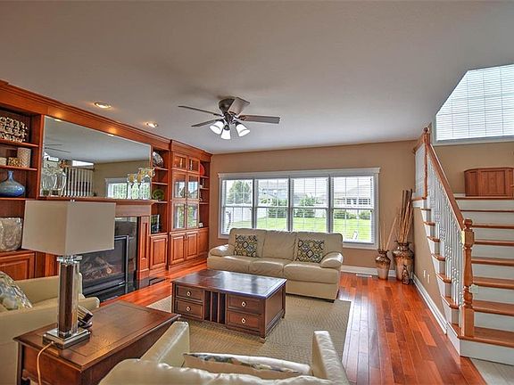AMAZING upgrades here by seller! Hardwood floors, goreous built in book display in living room and eye catching wall to wall built in both with lighting in the family room. Kithcen will blow you away. The high end appliances, new cabintes all the way to the ceiling, stunning black quartz, center island with a drop down kids island/table. So well appointed with all the extras. Bonus great room on upper floor perfect for kids toys or additional TV space. 4 bedrooms up and a 5th in the finished basement. Generous room sizes, walk in closets and pleasing colors and a spa like master bath! Basement space finished with a full kithen/bar area. Full bath and family room for entertaining family and friends. Back yard fenced in, full length patio of the entire home. Natural gas line for grill and line also ran for future fire pit. Spacious 3 car garage, brick mail box. Attractive front porch, landscaped yard, maroa forsyh schools and so much more!