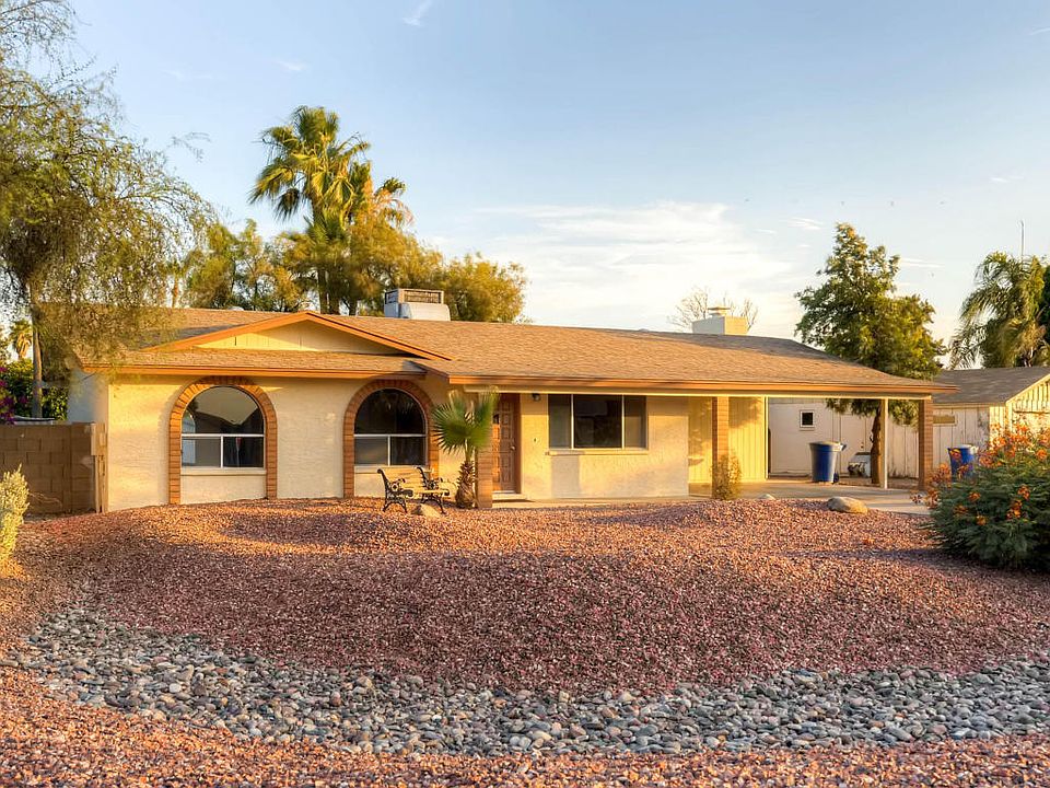 Wonderful opportunity on this aggressively priced remodeled home. You'll see home has been painted in and out. A wall was removed to make a nice open floor plan. New granite counters have been added to the kitchen. Washer, dryer, refrigerator included. The family room has a charming brick fireplace. All flooring has been replaced and both bathrooms have been remodeled. The home is slump block. There is a nice storage room off the covered patio. Nice large lot with mature trees. Rock landscaping in front. Grass in back. 1 year termite warranty. You'll love the neighborhood and its convenient location to shopping, dining the 202 freeway.