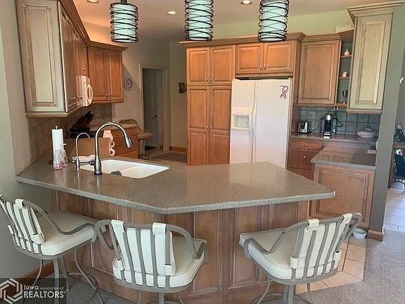 Remarkable condo located on #5 fairway at the Algona Country Club. Features include: Nice sized foyer with double closet & half bath, beautiful kitchen, formal dining room, living room, den with fireplace & glass siding doors leading to a large deck. Master bedroom with 3/4 bath and walk-in closet that leads to the laundry room. The finished lower level has both a small & large storage room, family room, 2 bedrooms, full bath and 2nd laundry. Double attached heated garage. Large lot is nicely landscaped and has a lawn irrigation system. Move in ready. 1st floor sq ft 1,732.