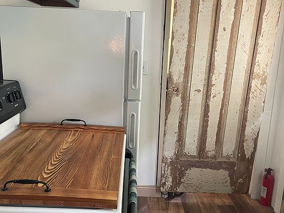 Cozy updated kitchen with barn door going to basement and updated bathroom with built in shelves ! Open front porch with two bedrooms with hardwood floors and one bath on main level. Full basement with laundry and bonus room with drywall walls. Landlord supplies Appliances! Outside is currently getting a fresh new coat of paint and new sidewalk. Location is walking distance to Reagan middle school. Please no smoking, renter is responsible for utilities, lawn care, and snow removal. 1 year lease is preferred. Also $50 a month for each additional pet.