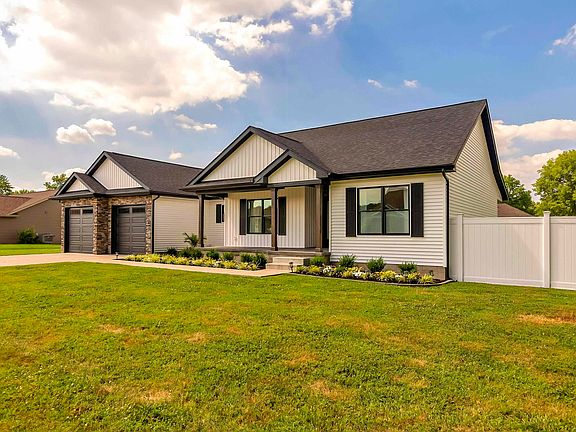 A gorgeous drive up gives way to a stunning three-bedroom, two-bathroom home on a corner-lot nestled in a peaceful neighborhood. As you step inside, be greeted by an open living room and kitchen area. Admire the tray ceilings and ample natural light pouring through the large windows. Appealing light fixtures adorn every room to contribute to the modern look throughout the home. The kitchen boasts stainless steel appliances, a generously sized island, and sleek finishes. The master bedroom offers a walk-in closet, a luxurious tile shower, and double sinks for added convenience. Step outside to find covered front and back porches, ideal for enjoying morning coffee or evening sunsets. The new white vinyl fence encircles plush grass and magazine worthy landscaping. Don’t miss out on this modern masterpiece—schedule your showing today and make this house your new home sweet home!