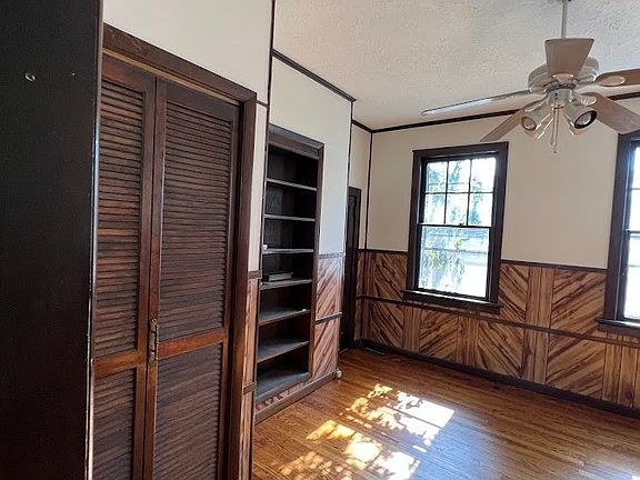 Bedroom is on the main floor and has 2 closets. One is a walk in closet with built in shelves.