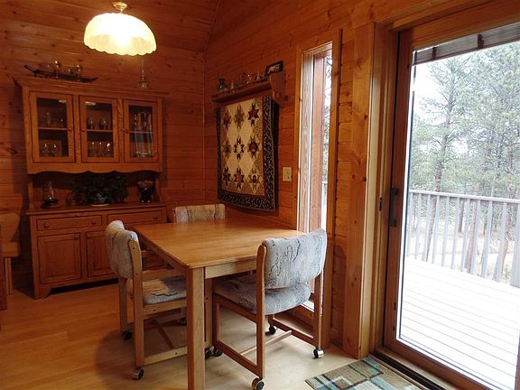 A Black Hills 3 bdr. 2 bath Cabin home that reflects what you want in the perfect setting! . Vaulted ceilings, efficient wood stove in living area, corian kitchen counters, hard wood, carpet and vinyl flooring. Wrap around no maintenance decks, gazebo, rock outcroppings, ponderosa pine, and perfect spot for the motorhome. Detached 2 stall garage and oversized drive under garage for extra "toy" storage. Forest Service close by make this complete!.