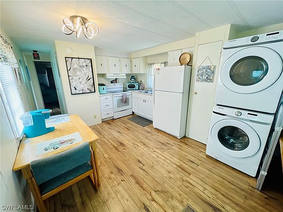 Turn Key, fully furnished. Drop your bags and hit the beaches! Low voluntary HOA to enjoy the clubhouse and the pool. Remodel includes new mini split AC/Heat unit, new front wall and window,done with re-purposed pallet wood. New vinyl siding, new walk in shower and toilet. New stove, washer and dryer, Fridge, light fixtures.