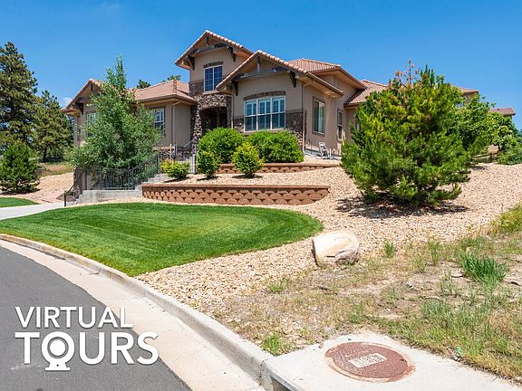 Amazing luxury home with 6 bedrooms, 7 baths, and 6,200 square feet in Parker! You'll love the high-end finishes and countless upgrades throughout, including three gas fireplaces, rich hardwood floors, crown molding, plantation shutters, full basement with wet bar, and a spacious, open floorplan with soaring high ceilings. The front yard has been immaculately landscaped with gorgeous trees, shrubs, and a lush green lawn w/ sprinkler system. The main floor offers lots of opportunities for entertaining, including a formal living room and dining room, as well as a bonus room and home study w/ French doors. Open to the family room, the top-of-the-line chef's kitchen features granite countertops, 42" upper cabinets, roll-outs on lowers, separate pantry, bar seating w/ storage on island, and stainless-steel appliances including double ovens, and a gas cooktop. The main floor features three bedrooms, including the luxurious primary retreat, complete with a double-door entry, private sitting area w/ double-sided gas fireplace, large bay windows, tray ceiling, walk-in closet, and a spa-like en-suite with tile floors, dual vanity w/ granite countertop, linen closet, walk-in glass shower, and a relaxing soaker tub. Both secondary bedrooms offer their own private en-suite bathrooms, both with granite and custom tilework. The finished basement was made for entertaining! It features a large living area with wood plank tile flooring and a gorgeous kitchenette with granite countertops, sink, microwave, and full-size refrigerator. The basement also includes a powder bath, three guest bedrooms w/ carpet floors, with two sharing a Jack-and-Jill style bath, and the other with its own private en-suite. Low-maintenance backyard with spectacular flagstone patio and built-in firepit perfect for enjoying on chilly Colorado evenings! Separate laundry room. Central A/C. Three-car garage. Wonderful neighborhood near excellent schools, several parks, and all amenities within minutes. Don't miss the opportunity to own this fabulous home!