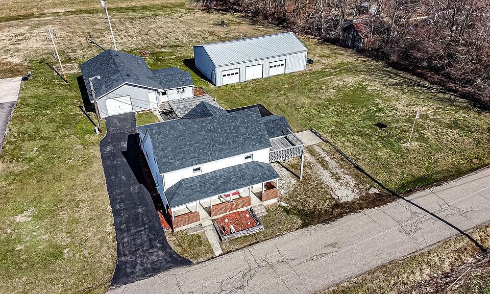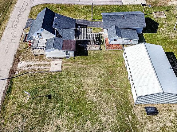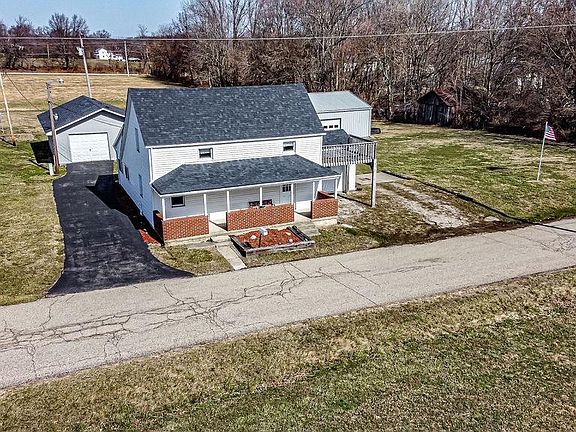 Cozy home and Tons of Character!! This 3 bedroom home features 1st floor bedroom and laundry, large front covered porch. Vaulted ceiling in LR w/walkout to back patio, Farmhouse kitchen, updated bathroom in 2021, new roof 2017, wood plank ceilings. Detached garage with game room in back. Huge 30x48 pole barn set w/ workshop, airlines, 3 bays, gas furnace. Lots of storage in additional lean to sheds.