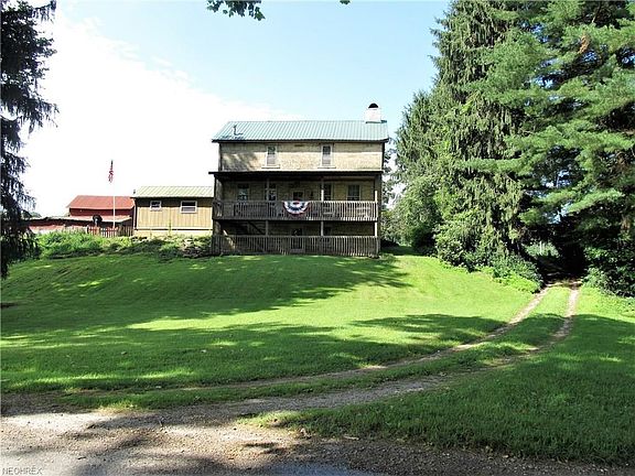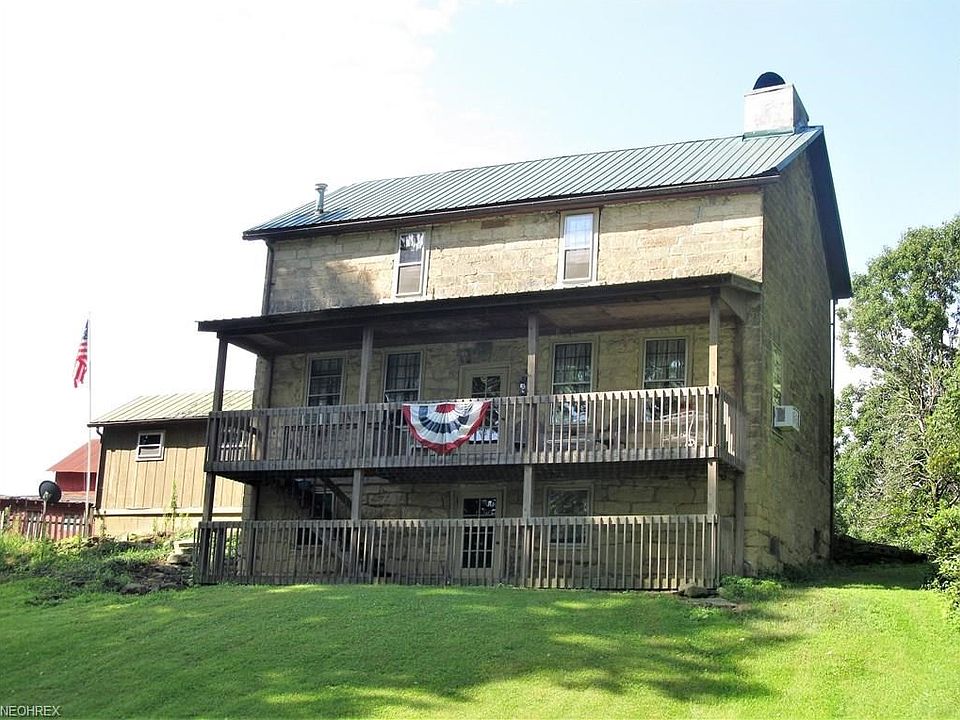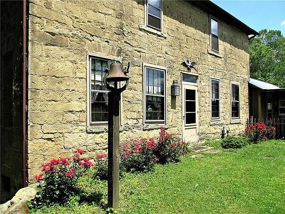 A Historical Lover's Dream! Situated atop a bluff overlooking the Muskingum River is the Jonathan Sprague House, Circa 1800. This is one of Washington County's most significant houses, due to its age and the method of construction. Built in the Federal style of architecture, it is 3 1/2 stories tall and built of primarily large blocks of sandstone. It is known to be the first stone house to be built anywhere in Washington County. The 2 or 3 bedroom, 2 full bath home features 1880 finished sq ft of living space, spacious rooms, a full basement for storage, first-floor laundry and bath plus bedroom if one prefers all one floor living. The interior of the home offers beam ceilings, bold fireplaces, original wood floors, solid walnut trim, doors, and windows. The 5.25 acres does include over 540 feet of river frontage plus a dock. There is also an older barn/shed plus a log cabin that is SO private. The cabin has newer windows and newer roof but still needs some TLC. All Mineral Rights DO convey. A MUST SEE! The security of a Home Warranty Provided.
