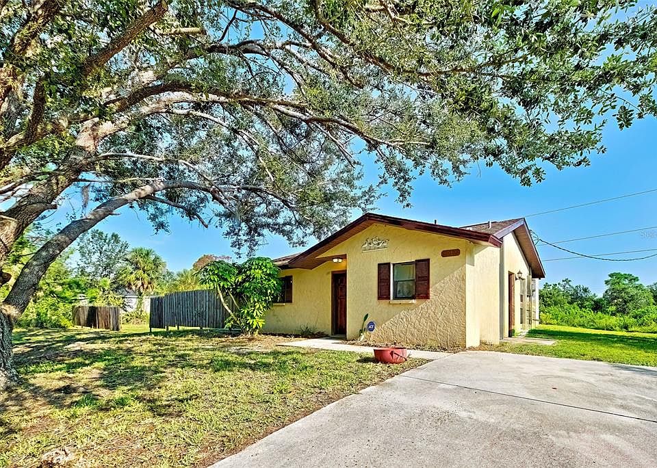 MAJOR PRICE IMPROVEMENT! This two bedroom one and a half bath cottage is situated on a double lot in a private area of Gulf Cove off the Myakka River. This home is compact but features volume ceilings, mini split HVAC and best of all, a 550SF detached garage with 1/2 bath perfect for work at home business, hobbies or that giant collection of whatchamacallits you have been collecting for years. Join the voluntary HOA and you have a riverside park, private boat ramp and social activities just down the street. Need a little more land, this seller has four adjoining lots available for a total of 1.4 acres if you like to mow grass. Did I mention this home is in the X flood zone, which is a good as it gets on the Cape Haze peninsula, and no mandatory HOA fees or deed restrictions. Add up the privacy, double lot, outbuilding and amenities then look at this price! Wow, better call fast!