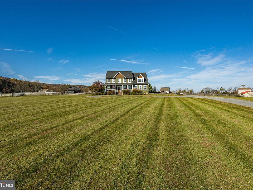 Discover this picturesque 10-acre property, featuring a beautifully maintained approximately 3,100 finished square foot home with five spacious bedrooms and three-and-a-half baths, perfectly situated to embrace the sun-drenched south-facing exposure. This idyllic residence is ideal for both country living and agricultural pursuits. Step inside to find a bright and airy main level with 9-foot ceilings and stunning reclaimed oak flooring, offering warmth and character throughout. The inviting layout includes an office space for remote work and an unfinished basement with rough-in plumbing for a future bathroom. Recent updates feature Hardie siding, a new roof, and gutters, ensuring peace of mind for years to come. Enjoy the comfort of propane gas heating, a fireplace, and a stove/oven, along with a recently replaced HVAC system. Outside, the property boasts a lovely covered front porch with Trex boards, perfect for relaxing while overlooking the lush landscape. The 2-car garage offers ample storage, while electric panels are in place for a portable generator with potential for providing backup power to half the home. This charming farm includes half an acre of mature peony plants (approximately 800) for income producing opportunity! The shed, equipped with electricity and a walk-in cooler, provides excellent storage for your floral business. The barn features a Nelson heated automatic waterer, a new roof, and an enclosed tack and hay area, designed by a structural engineer for optimal functionality. The property is fully fenced with three- and four-board oak, featuring a large flat riding ring that can be restored to its original stone surface. Enjoy over five acres of well-maintained pasture, mature apple, peach, and pear trees, and plenty of parking for guests. This exceptional property comes with a 50-foot access and utility easement, ensuring convenient entry and essential utilities. It benefits from an open-space land classification for tax efficiency, with 2023 taxes at just $6,447. Located on a private road with a maintenance agreement, this home sits at the end of a cul-de-sac, offering privacy without HOA restrictions. Families will appreciate access to quality schools nearby, including Lovettsville Elementary, Harmony Middle, and Woodgrove High. Plus, the surrounding area boasts abundant local flavor, with six wineries and three breweries all within a ten-mile radius for a true taste of Loudoun County’s charm.