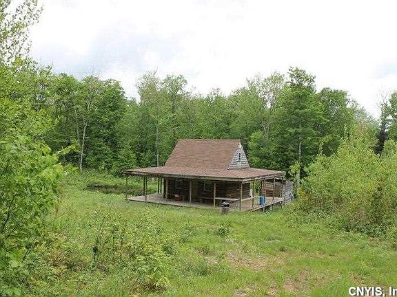 Attention Sportsman... this one of a kind hunting camp with wraparound deck, pond and 76 acres of woodlands is perfect for anyone looking for the dream hunting camp in the North Country! 76 acres + camp borders state land directly and connects to Lewis County ATV and snowmobile trails. Ideal large acreage get away! Acreage consists of mixed woodlands and three different building tracts, a 15.58 acre parcel, a 28.3 acre parcel and a 32.57 acre parcel, all offered as one land and camp deal! Tons of bear, deer, turkey and State forests to enjoy the surrounding woodlands.