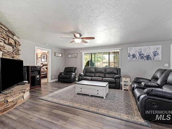Discover the perfect blend of comfort and versatility with this 4-bedroom, 2.5-bathroom home on one acre in Southwest Boise, with no HOA, and CC&Rs. This charming single-level home features has numerous upgrades completed within the last three years, including dishwasher, six burner stove top, double oven, microwave, water heater, water softener, high efficiency central heat and air conditioner, fresh paint, and new flooring. The detached three-car garage is insulated and equipped with plumbing for a compressor, wall AC, and a new epoxy floor. The property also boasts a versatile four-bay shop (1946 sq. ft.), fully insulated. The shop includes office space, a waiting room, bathroom, and two lifts and more! Additionally, you'll be able to enjoy the large deck, covered patio, mature peach and walnut trees—plus there is even more to see!