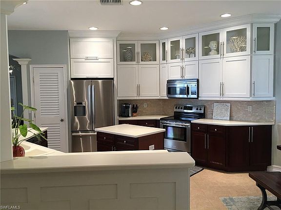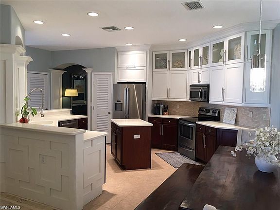 This stunning 3 bedroom 2 bath home offers over $30,000 worth of upgrades and shows like a model! The beautiful Mill Work in the entry that carries through to the kitchen, living room and master bedroom make this home a show stopper! The well appointed kitchen offers new cabinets on the uppers and an open floor plan with travertine tile, new lighting, fresh paint and plantation shutters through out the home! The extended living room and lanai is another bonus that add to the spacious living area. The newly landscaped yard offers large lava rocks for low maintenance. The bathrooms are updated with beautiful beveled mirrors to the ceiling! This house is a must see and in a family friendly community close to the airport, shopping, and the new Red Sox spring training facility! Call to schedule your private showing today!