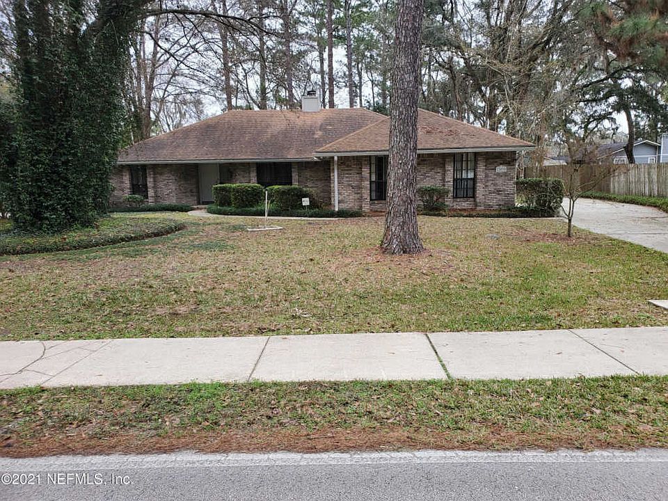 Beautiful Mandarin brick home on large lot (.64 acre) with side entry garage Plenty of room for a pool. One owner, split floor plan, well cared for home. New roof in 2015. Lots of character with a step-down living room with fireplace and built-in shelves. The living room extends out into the glassed Florida Room which lets in tons of natural light. Very spacious master suite and good size additional bedrooms. This is a great house in a great location, don't delay, call and schedule your preview today!