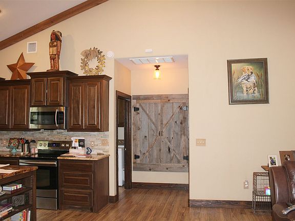 Nestled in your own little piece of paradise this amazing "Barndominium" on 3 acres is the perfect retreat. It has a modern rustic flair with upgrades throughout, including: granite countertops, hardwood floors, custom island, stainless steel appliances and vaulted ceilings. Plus, walk into the attached garage with overhead storage that could easily be turned into a 3rd bedroom. The large master bedroom and bathroom features a walk-through closet with built-ins. There is also an attached laundry room. The attic provides ample room for storage. View the wildlife which frequent the property while sitting on the new front or back wooden decks. Only a 5 minute drive to Lake Murray and centrally located between Marietta and Ardmore with easy access to I-35. This amazing property will not last long!!!