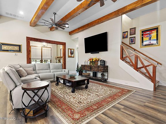 PRICE IMPROVEMENT! Modern farmhouse estate on 10 acres in Lewisburg school district! Bring your horses and enjoy the best of fine DeSoto County living in a country setting. House is 7,108 s.f. of finest finishes, 4BR, 4 Full and 3 half baths, bonus room, 2 large offices, art gallery, kitchen, dining room great room, sunroom, safe room and 4 car garage. THREE stairwells! 10 ft. ceilings down, 9 ft up, 6 Heat/air units. BARN is 5250 s.f. with 1 BR, 2BA, office, laundry room & kitchen/greatroom combo, and a shop area, indoor sport area, office, and 3 overhead doors for loading your equipment. Enjoy the large pond with grain fed fish, ducks, and lights and sprayers. There is a gazebo, covered fishing doc, and windmill that pumps air into the pond. Lawn has irrigation system too. Many items remain with the home.