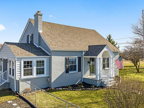 This complete home package offers more than meets the eye! Four bedroom two bath Brick Cape Cod home tastefully modernized offering spacious living space w/ hardwood floors. Main level offers fully equipped kitchen, formal dining room space opens to charming living room w/ brick fireplace and entricate trim detail on ceiling. bright laundry room, two bedrooms and one full bath, and enclosed sunny porch. Upper level is complete with two bedrooms, full bathroom, and open den/family room area. Separate guest house with 650 additional finished sq. ft. is equipped with bar, entertainment/living space, den, half bathroom, and garage. Don't miss the 1100 sq.ft. detached garage space which brings many opportunities for the hobbiest. Outside offers all the amenities to entertain and welcome friends and family from the rear covered deck, firepit area & above ground pool with deck. A complete unrestricted home package settled on 1.45 fully fenced acreage. Minutes from the VA line and I-81 interchange.
