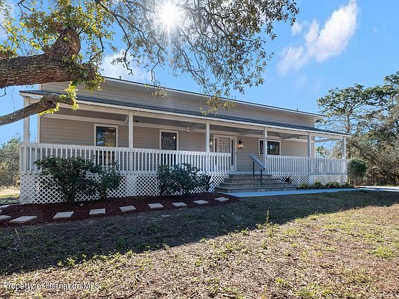 Active Under Contract - Accepting Back Up Offers. This beautiful 5 bedroom, 3 bathroom home on 1.17 acres, and is located in the desirable Weeki Wachee area of Florida. With 4560 square feet of living space, this home is perfect for a growing family. This home features 3 levels of space!!! The living room on the main floor is bright and airy, with beautiful wood beams, and plenty of natural light from the large glass sliding doors that lead out to the large wood patio. The kitchen is well-equipped with modern appliances and plenty of counter space. The bedrooms are all generously sized and feature large windows and closets. The master bedroom is especially spacious and features a large updated en-suite bathroom.