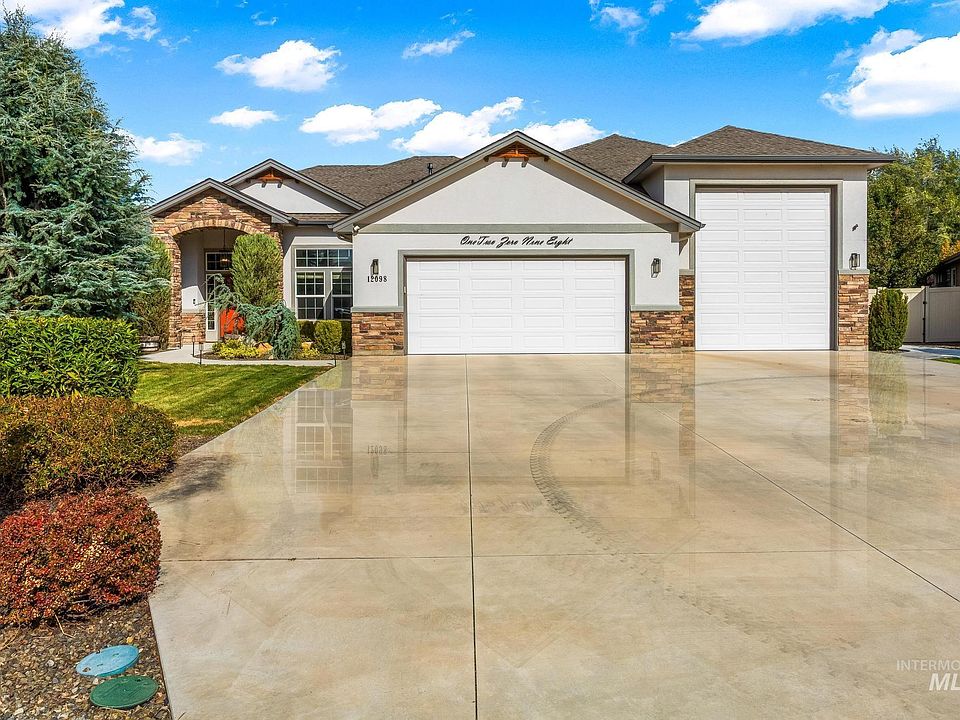 Located in one of Star's most sought after subdivisions; The Lakes at Pristine Springs. This beauty blends comfort, & cozy with grace and elegance. Front entry opens to a gorgeous great room with soaring ceilings, fabulous stone fireplace, a beautiful built -in & loads of windows providing the perfect amount of natural light. Great room seamlessly flows into a chef’s dream kitchen and dining area. Kitchen features white cabinetry, quartz countertops, double ovens, gas range, built-in microwave, spacious island, and a walk-in pantry! The primary suite is light, bright and very spacious. Includes private access to patio. Spa-like ensuite features dual vanities, a soaking tub, walk-in shower as well as a walk-in closet. Second bedroom is a junior suite. Perfect for family members and/or guests. Third bedroom as well as office/den are also generously sized and offer flexibility to suit all needs. Covered patio opens to a beautiful water feature, ample room for patio furniture and your favorite BBQ or smoker. Generous lot size features well manicured landscaping and is fully fenced with vinyl fencing. Garage and RV bay are the ultimate wow factor! Includes a 240 hookup as well as spicket for hose bib. Perfect for vehicles, RV and any additional toys! Home is plumbed for central vac.