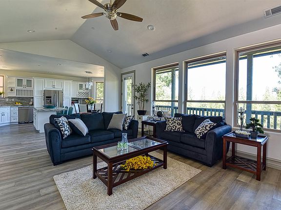 NEW quality built single story home on a level lot, with 2 x 6 frame construction, insulted floors, interior and exterior walls, and Milgard windows! Attractive stucco exterior and dormer windows. Energy efficient 30-year comp shingle roof with gutters front and back. Impressive bright and open floorplan with 10 ft ceilings and 9 ft doors, "old world" textured ceilings and walls, and 9" baseboards. All rooms feature engineered hardwood flooring, recessed lighting, ceiling fan/lights, and big windows for plenty of light. Large kitchen features lots of cabinet and counterspace with leathered granite countertops. Cabinets feature wine rack, dish rack, glass display cabinets, pull-out spice shelfs and display shelves over sink. Island counter with breakfast bar, and bar counter with sink. Kitchen is furnished with Samsung stainless appliances including gas oven range, microwave, dishwasher and refrigerator with ice dispenser. Dual basin stainless sink with utility faucet. Adjacent dining room and living room with vaulted ceiling and large windows. Door access to deck features built-in blinds. Premium trex decking off back of home with view of large yard. Large master bedroom with attached master bath featuring travertine floors and shower with tile accent, freestanding soaker tub, dual basin vanity, and adjacent walk-in closet with organizers,. Bright 2nd and 3rd bedrooms with adjacent full bath featuring travertine floors and shower with tile accent. Finished 2 car garage with insulated walls and garage door, recessed ceiling lights and auto garage door opener. Low maintenance level concrete driveway and landscaping with timed drip irrigation system. Huge storage area under home. Big utility bill savings with this home being on a new septic system and tankless water heater.