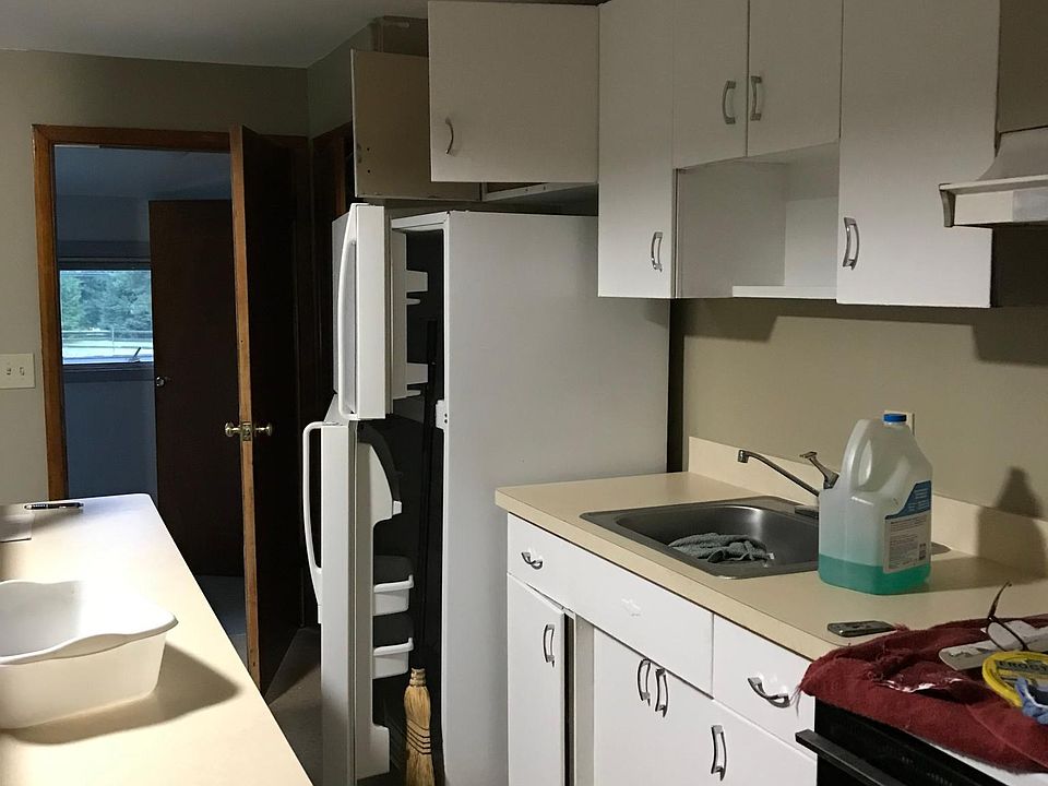 Two bedroom apartment upstairs overlooking scenic backyard and pond. Quiet neighborhood. One car attached garage with garage door opener. Washer and dryer in the garage. No smoking. No pets First month's rent and security deposit up front. Monthly rent includes heat and hot water.