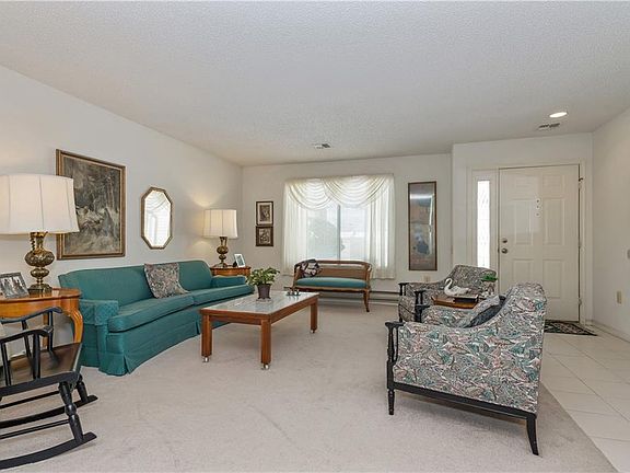 Popular Braeburn Model in MINT Condition! Open & bright describes the entry to this home. White Ceramic Tile, Newer Carpet Thru-Out! Large LR/DR Combo - Eat-in Kitchen w/ Upgraded White Ceramic Tile - Delightful Sun Room lined w/ windows, heated, air conditioned & sliders to oversized yard & views of the Gazebo. Guest Bathroom is immaculate...all White - Clear Glass Enclosure on Tub - NEW Washer/Dryer, NEWER HW Heater. This home is located on a cul-de-sac with an oversized yard, has a rare two-car garage and is priced-to-sell! ONE YEAR HMS HOME WARRANTY TO BUYER UPON CLOSING!