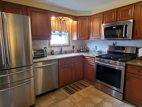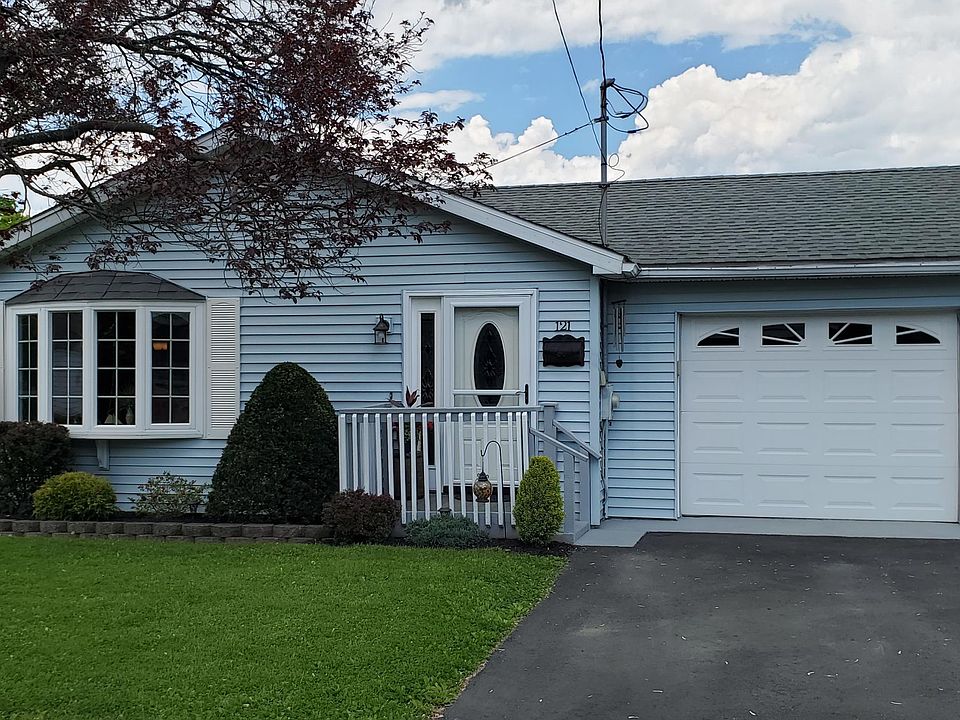 In Town Living in this Meticulous Move in Condition Ranch. This 3 Bedroom, 1 1/2 BA home featuring hardwood floors thoughout in living area and all bedrooms, stainless steel appliances, breakfast bar, hot water baseboard gas heat, unfinished basement, trex deck and large fenced in yard. One car heated garage included. Easy maintenance and many upgrades! Walk to shopping, restaurants, Airport Park, DV elementary school and buses and trains to NYC.