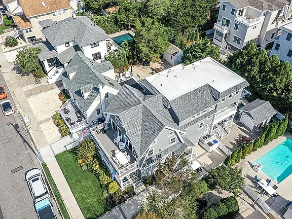 EXCEPTIONALLY DESIGNED, TRULY CUSTOM BUILT, BEAUTIFULLY MAINTAINED. Stunning three story upside down style home located 2.5 blocks to the beach. The home offers 3630 square feet of living space with 5 large bedrooms, 4 full baths, powder room and a dedicated pool bath. First floor has a fabulous custom mahogany door entrance into an expansive foyer leading to three bedrooms, one en-suite bath, hall bath, wonderful laundry with extra fridge and a comfortable family room adjacent to the pool. The rear yard has a custom designed in ground pool with elevated spa and sun shelf. There is a dedicated pool bath that keeps the wet feet out of the home. An attractive stair case takes you to a dramatic vaulted great room with fireplace, large dining area and a fabulous kitchen with center island, Wolf range, Subzero stainless steel fridge, wine chiller, 2 sinks, stone tops and a spacious pantry. A beautiful powder room services the great room which also flows to an expansive, southern exposed sun deck. Second floor has a very large and inviting junior master suite with en-suite bath and private deck. Third floor has an expansive master bedroom with office, sumptuous master bath with oversized shower and walk in closets. Other special features include gorgeous, classic oak floors through all common areas and first floor bedrooms, custom trim package, inviting first floor covered porch, detached storage and ample off street parking. The grounds are beautifully landscaped and the home is sold attractively furnished per an inventory list. The home is owner occupied and convenient to show.