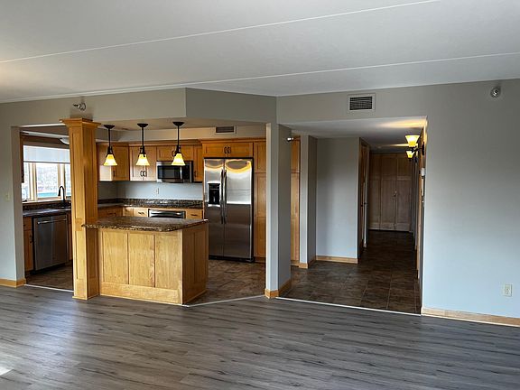 Beautiful 2 bedroom 2 bathroom end unit with windows on three sides. You will love the bright, open layout and enjoy the large balcony with views of Lake Silver and downtown Rochester! This unit has gorgeous custom millwork throughout. The kitchen has all high-end stainless steel appliances and beautiful custom cabinetry with breakfast bar. Recent updates include - new living room flooring, professionally painted and custom blinds. The wider hallways, doorways and grab bars make it a more accessible living. The elevator is close to unit and designated garage stall. The building amenities include an indoor heated pool, community room with full kitchen, patio for grilling, workshop, elevator, central air conditioning, storage spaces and heated underground parking. Buena Vista Condos has been newly renovated and is walking distance to downtown and Mayo clinic.